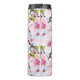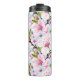 Un tumbler thermique présentant de délicates branches de fleurs de cerisier dans des tons doux de rose et de vert sur un fond bleu serein, offrant une touche élégante et apaisante aux boissons à emporter. Un choix raffiné et prêt à offrir pour les amoureux de la nature et les admirateurs de designs floraux gracieux