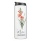 Fleur du mois de naissance Août Gladiolus tumbler thermique avec l'illustration d'une fleur de gladiolus. Sous la fleur, le nom est écrit dans une police de script élégante. Sous le nom, il indique "Août - Gladiolus", indiquant que le mois de naissance du propriétaire est Août et que sa fleur de naissance est le gladiolus. Il s'agit d'un tumbler personnalisé, customisé comme un cadeau réfléchi pour quelqu'un du nom de Madison né en août.