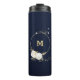 Belle tumbler thermique bleu marine à fleurs blanches et feuilles dorées