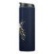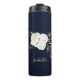 Belle tumbler thermique fleurs blanches & feuilles dorées bleu marine