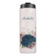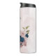 Magnifique tumbler thermique romantique avec des fleurs roses et bleues marine et quelques jolies feuilles .