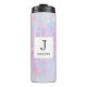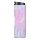 Bouteille d'eau avec un motif arrière - plan abstrait. Les aquarelles rose violet et bleu composent ce design artistique qui présente des formes verticales rectangle sur un arrière - plan doux et marbré. Un carré superposé avec une fausse bordure en feuille d'or, votre texte personnalisé à l'intérieur.