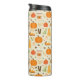 Ce design présente un motif délicieux thème automne rempli d'éléments d'automne douillets. Le design comprend des illustrations de citrouilles, des tranches de tarte citrouille garnies de crème fouettée, des boissons chaudes en tasses à emporter et des courges de noix de beurre. On y trouve des bâtons de cannelle, de l'anis étoilé, des sprigs de verdure, des feuilles d'automne, des glands et de petites baies, le tout dressé contre un arrière - plan crème tendre. La motif dégage une atmosphère chaleureuse et accueillante, parfaite pour célébrer les saveurs et les couleurs de la saison d'automne.