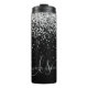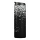 Parties scintillant en argent noir glam Élégant Monogramme Tumbler thermique. Personnalisez facilement ce design chic et branché de tondeuse thermique avec une élégante parties scintillant brillante argentée sur un arrière - plan noir. Le design comprend votre monogramme manuscrit avec de jolis tourbillons et nom.