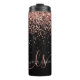 Glam Rose Parties scintillant or Élégant Monogramme Tumbler Thermique. Personnalisez facilement ce design chic et branché de tondeuse thermale avec une élégante parties scintillant en or brillant rose sur un arrière - plan noir. Le design comprend votre monogramme manuscrit avec de jolis tourbillons et nom.