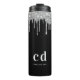 Un fond noir classique avec des gouttes de paillettes argentées fausses, aspect de peinture qui coule. Personnalisez et ajoutez un nom et des initiales de monogramme. Le nom est écrit avec des lettres blanches modernes et en bloc.
