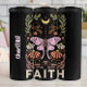 Ce graphique spirituel Boho présente un grand papillon rose central entouré d'éléments célestes et naturels. Au-dessus se trouve un croissant de lune et d'étoiles, tandis que les champignons, les fleurs (comme les marguerites et les confleurs), et la verdure encadrent le design. Sous le papillon se trouve un troisième oeil stylisé. La palette de couleurs utilise des tons terre comme le rose, le brun, le bronzage et le vert olive, ce qui lui donne une sensation vintage ou rétro. Le puissant mot "FOI" ancre ce design décoratif et mystique en bas.