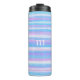 Le design présente des rayures acryliques grossièrement peintes dans une palette turquoise, rose et violette. Personnalisez avec une initiale.