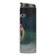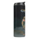 Take Grimmloch on the go with this thermal travel tumbler, featuring the official emblem of the narrative-based RPG by Opulent Code LLC. The detailed horned goat crest, paired with rich teal and gold tones and full Grimmloch branding, creates a bold vertical design that stands out beautifully.