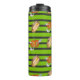 Ce tumeur présente des cercueils d'aquarelle et des lanternes de jack o' avec des fantômes qui sortent sur un arrière - plan amusant vert et gris foncé rayé. Idéal pour le café de saison Éffrayante ou le thé chaud!