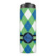 Motif Monogrammed Blue et Green Jacquard Laissez votre tasse être aussi unique que votre préférence de boisson! La construction à double paroi de ce chaudière sur mesure vous aide à garder vos boissons chaudes et vos boissons cool froides, tout en gardant vos mains à l'aise. Le couvercle est hermétique pour éviter les éclaboussures et le fond est rembourré pour plus d'adhérence.
