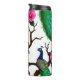 Oiseaux de paon perchés sur des branches et fleurs de camélia rose, ce motif est dessiné à la main dans Photoshop.