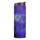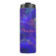 Cette bouteille thermo-tondeuse pour garder vos boissons froides ou chaudes a un design assez abstrait de tourbillons vibrants de couleurs en roses chaudes, vert menthe sur un arrière - plan bleu profond. Customisez votre nom avec le modèle.