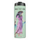 Cette bouteille thermale de tondeuse pour garder vos boissons froides ou chaudes est verte avec des accents bleus avec une jolie dame de l'Egypte ancienne dans une longue robe rose portant des bijoux en or et une écharpe bleue. Customisez votre texte avec le modèle.