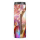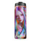 Bouteille personnalisée. Jolie femme rose et violette avec un effet mystique dans un arrière - plan éthérée rose floral et papillons. Ses cheveux ressemblent à un joli prisme.