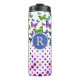 Monogramme tumbler avec de jolies papillons et des points design en blues, vert et violet.
