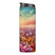 Cette peinture vibrante capture une libellule colorée qui s'envole librement au-dessus d'une prairie ornée d'une mer de fleurs radieuses. Ses ailes délicates la transportent gracieusement à travers les fleurs, ajoutant des éclats de teintes brillantes au décor, créant une représentation onirique de liberté et de vitalité.