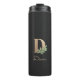 Élégant tumeur thermique noire avec un monogramme botanique en or au centre.