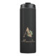 Élégant tumeur thermique noire avec un monogramme botanique en or au centre.