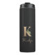 Élégant tumeur thermique noire avec un monogramme botanique en or au centre.