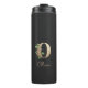 Élégant tumeur thermique noire avec un monogramme botanique en or au centre.
