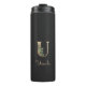 Élégant tumeur thermique noire avec un monogramme botanique en or au centre.