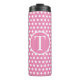 Lettre initiale personnalisée Polka Dot rose et blanc. Fait un joli cadeau mignon qui peut être customisé avec n'importe quelle lettre initiale. Pour étancher votre soif, utilisez notre polka Dot Motif Thermal Tumbler avec un design initial personnalisé. Restez tendance et respectueux de l'environnement avec cet accessoire durable et élégant.