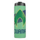 Découvrez le logo du glyphe de Justice League Aquaman en vert et or, accentué de touches de pinceau et de points mi-teintes pour lui donner une sensation de bande dessinée nostalgique.
