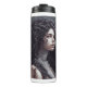Un tableau numérique d'une jeune femme aux cheveux longs bouclés. Bouteille isotherme