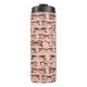 Ce tumeur thermique présente une variété de différentes lunettes et lunettes de lunettes en noir et blanc sur un rose pâle.