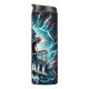 Il s'agit d'un design graphique dynamique et attrayant avec un thème footballistique. L'image centrale est composée d'un casque de football et d'un ballon de football, entourés d'une explosion de boulons électriques bleus et blancs. L'expression "FOOTBALL MOM" est affichée en évidence dans une police métallique en gras au bas de la conception. L'arrière - plan est un ciel sombre et étoilé, qui renforce l'esthétique énergique et puissante.