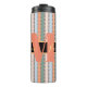 Monogramme personnalisé Mariage rayé Bridesmaid Thermal Tumbler Obtenez la fête a commencé avec ces mignonettes thermiques qui sont faciles à personnaliser pour votre fête de bachelorette, la nuit, ou le week-end des filles! De style moderne, il porte un nom personnalisé avec des lettres rose pêche et jaune sur un arrière - plan vert, orange, jaune et noir. Personnalisez avec deux lignes de texte personnalisé et un monogramme ou une initiale. Tout le texte peut être modifié à votre goût.