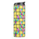 Cette bouteille thermale présente un design moderne du milieu du siècle de lunes de croissant divisées horizontalement en trois couleurs, rose, bleu, lavande ou de mer, divisées en deux et dispersées sur une grille avec un arrière - plan jaune. Si vous aimez le design mais que vous voulez des couleurs différentes, envoyez-moi un message.