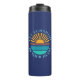 Un modèle photo rond sur un arrière - plan bleu foncé. Cliquez sur personnaliser pour changer le coucher du soleil à votre propre image, et le texte à votre propre, ou acheter en l'état.