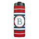 Design à thème nautique avec décoration monographique en forme ronde avec illustration de corde sur arrière - plan rayé bleu, rouge et blanc