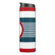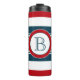 Design à thème nautique avec décoration monographique en forme ronde sur arrière - plan rayé bleu, blanc et rouge