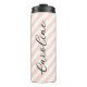 Sirotez avec style ce tondeuse thermique monogrammée personnalisée avec des rayures roses douces et un élégant monogramme de nom de script noir. Parfait pour garder les boissons chaudes ou froides, ce chic tumbler fait un cadeau de vacances branché pour les filles, un cadeau de Noël de l'enseignant réfléchi, ou un cadeau de femme de chambre personnalisée qu'ils utiliseront tous les jours.