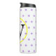 Pois violets sur arrière - plan blanc. Personnalisez avec votre initiale monogrammée en texte noir au centre du cercle jaune. Cercles géométriques branchés sur tumblers pour votre style unique. Amusant pour tous ceux qui aiment les points. Conception originale © TamiraZDesigns. www.zazzle.com/tamirazdesigns