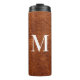 Un look de cuir imitation avec un monogramme moderne et audacieux. Faux marron tumbler thermique cuir pour lui d'obtenir son apport quotidien d'eau au bureau. Cette photo imprime à plat sans véritable texture en cuir. Créez votre propre faveur ou cadeau pour vos groomsmen.