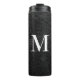 Un look de cuir imitation avec un monogramme moderne et audacieux. Faux noir de cuir tumeur thermique pour lui pour obtenir son apport quotidien d'eau au bureau. Cette photo imprime à plat sans véritable texture en cuir. Créez votre propre faveur ou cadeau pour votre meilleur homme et groomsmen.