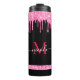 Monogramme personnalisé Noir et Métallique brillant néon rose chaud simulé goutte à goutte parties scintillant brillant peint tondeuse personnalisée, avec script de calligraphie élégant et polices sans serif chic et minimaliste.