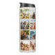Créez votre propre collage photo personnalisé tumbler thermique avec 16 de vos photos préférées dans une grille simple et un nom monogramme personnalisé dans la typographie moderne rose et orange.