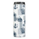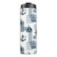 Design marin sans couture avec voilier, boussole, ancre et décoration de voilier arrière - plan géométrique bleu et blanc