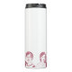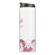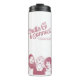 Tasse de voyage, rose sur blanc, avec sept caractères.