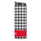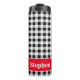 Stylish 12oz thermal tumbler featuring a black & white buffalo check pattern and red accent frame for you to personalize. . Change text to make it yours using the simple Template provided. Stainless body, plastic lid. Vacuum-sealed double walled construction retains temperature, hot or cold. Awesome gift for family, friends, actually-- anyone. See "About This Product" at side for more information and care.