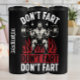 Ce graphique humoristique présente un homme musclé qui lutte avec une grosse cloche, entouré de flammes. Le design comprend le texte "NE PAS FAIRE FART NE PAS FART NE PAS FART", qui crée une drôle de déclaration qui capture l'effort intense d'une séance d'haltérophilie.