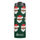 Un nom personnalisé Température de Noël avec un visage Père Noël noir motif illustré sur un arrière - plan vert. Il suffit de customiser le nom, d'ajouter ce tumbler à votre panier, et d'avoir un joyeux Noël!