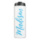 Un cool personnalisable monogramme bleu vif tumbler thermique pour une fille ou un gars qui aime les cadeaux simples et manuscrits. Beau script cursif sur le côté de votre bouteille en épelant votre nom dans la jolie typographie.