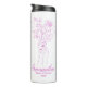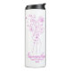 Gobelet thermique élégant présentant une délicate illustration de ligne rose d'une main tenant des fleurs sauvages. Personnalisé avec le nom de votre demoiselle d'honneur, ce design élégant fait un cadeau inoubliable pour les soirées entre filles, les brunchs de mariage ou les mimosas du jour du mariage. Féminin, moderne et totalement réutilisable.