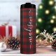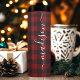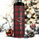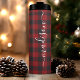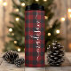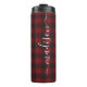 Tasse thermique à nom de script de signature de bûcheron à carreaux de Buffalo. Personnalisez ce design personnalisé avec votre propre nom de signature.